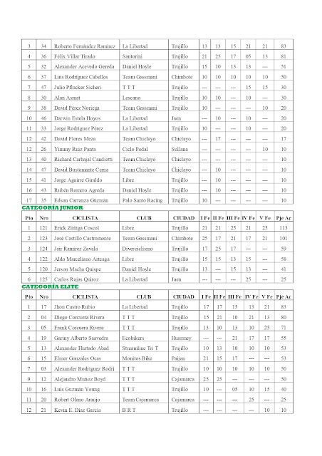 » PUNTAJE 5ta FECHA TRCLL: "FORTALECIENDO EL CICLISMO TRUJILLANO, RECREACIONAL Y SOSTENIBLE"